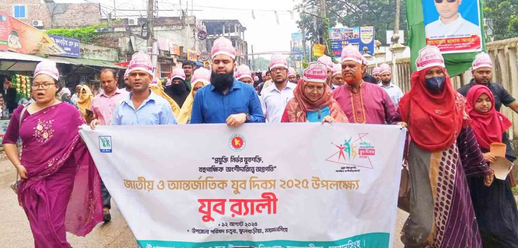 “প্রযুক্তি নির্ভর যুবশক্তি, বহুপাক্ষিক অংশীদারিত্বে অগ্রগতি”এই প্রতিপাদ্যকে সামনে ময়মনসিংহের ফুলবাড়ীযা উপজেলায় জাতীয় ও আন্তর্জাতিক যুব দিবস ২০২৫ উদযাপন উপলক্ষে বর্ণাঢ্য র্যালি ও আলোচনা সভা অনুষ্ঠিত হয়েছে। দিনব্যাপী কর্মসূচির মধ্যে ছিল যুব র্যালি, আলোচনা সভা, শপথ পাঠ, যুব ঋণের চেক, প্রশিক্ষণ সনদ ও ব্যাগ বিতরণ।